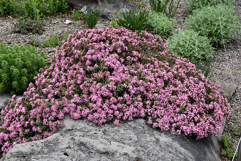 Rose Daphne will grow to be about 24 inches tall at maturity, with a spread of 24 inches. It tends to fill out right to the ground and therefore doesn't necessarily require facer plants in front. It grows at a slow rate, and under ideal conditions can be expected to live for approximately 20 years.