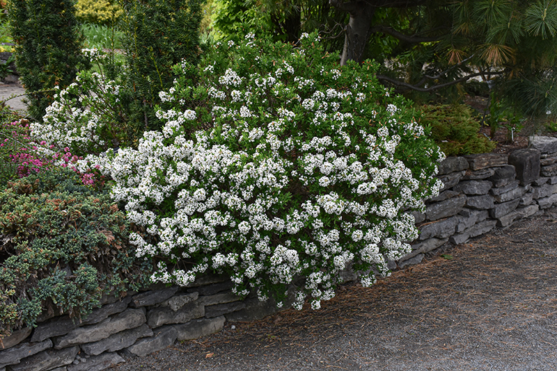 Burkwood Daphne will grow to be about 4 feet tall at maturity, with a spread of 5 feet. It tends to fill out right to the ground and therefore doesn't necessarily require facer plants in front. It grows at a slow rate, and under ideal conditions can be expected to live for approximately 20 years.