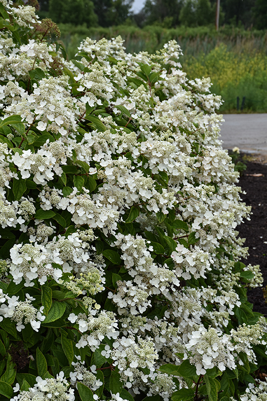 Fire And Ice® Hydrangea features bold conical white flowers with shell pink overtones at the ends of the branches from mid summer to late fall. The flowers are excellent for cutting. It has green deciduous foliage. The pointy leaves do not develop any appreciable fall colour.